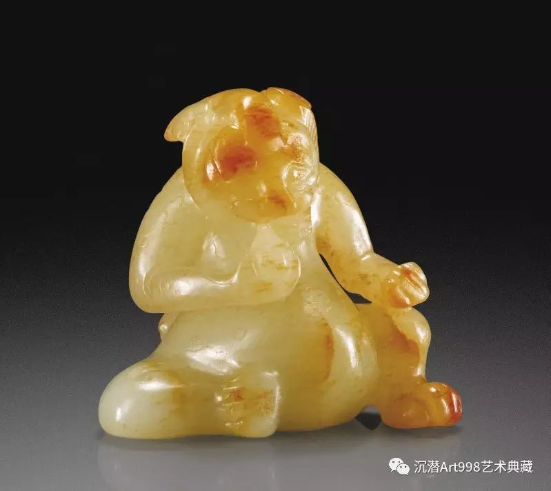 此類玉雕之超凡工藝隨少量傳世佳作得以流存,本品當屬個中極罕珍品,充分展現古代匠人技藝之絕。黃玉色澤瑩潤,神獸造型依原石形狀而出,雕工細膩巧妙,實為傑作。僅見一例,可相媲美,售於紐約蘇富比1979年11月2日,編號51,現為何鴻卿爵士收藏。1979年拍賣時此玉被定代六朝,後因其與1972年咸陽(今西安)漢元帝墓附近出土之玉闢邪風格相似,Jessica Rawson 將其重新定為漢代,參見 Jessica Rawson,《Chinese Jade from the Neolithic to the Qing》,倫敦,1995年,圖版26:7。此玉雕闢邪現藏咸陽市博物館,載於《中國文物精華大辭典:金銀玉石卷》,上海,1996年,頁54,圖版166。