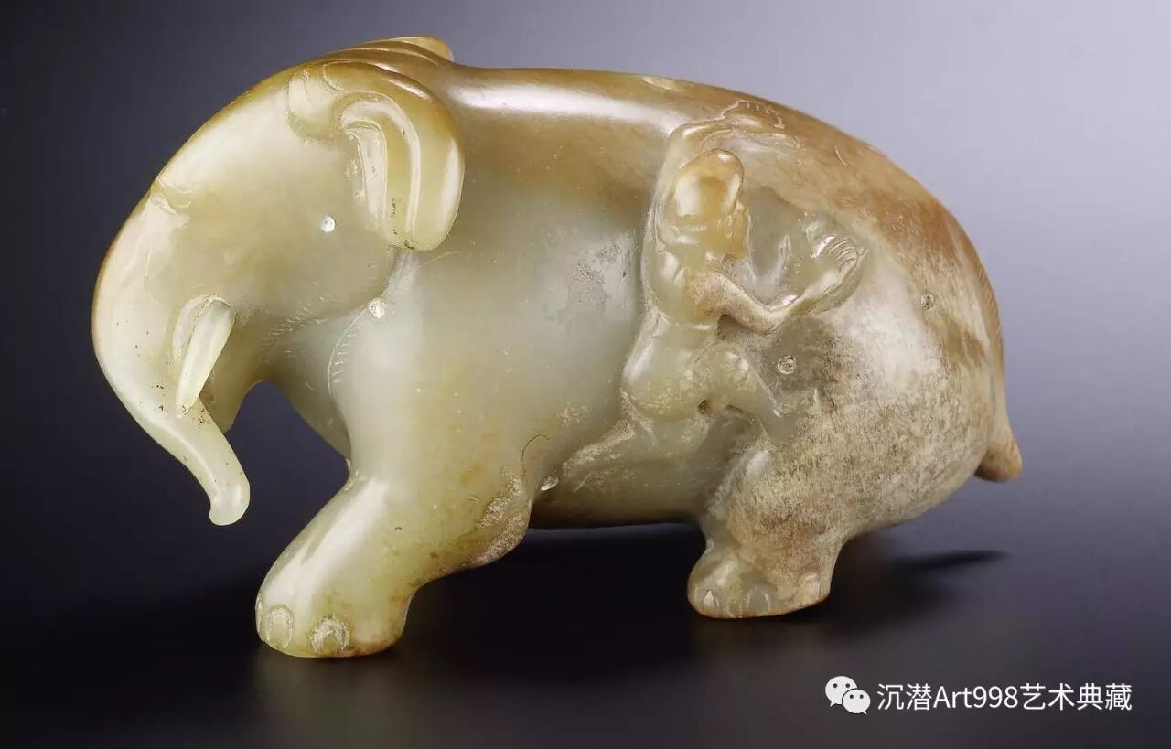 大像在中國向有審慎、智慧以及力量的象徵;「騎象」與「吉祥」諧音,此玉雕胡人騎像有和平吉祥的含義。